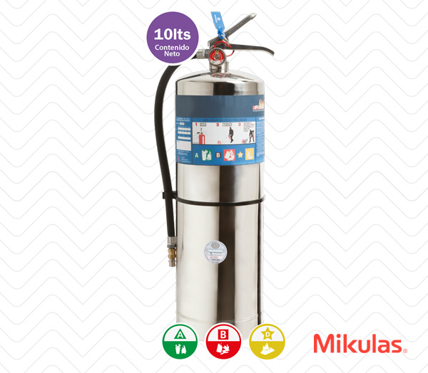 Utiliza como agente extintor F500 encapsulador, una solución acuosa, con dosificación de un concentrado innovador biodegradable, no tóxico y no corrosivo. Mejora notablemente la capacidad de extinción del agua en fuegos clase A originados en materiales sólidos comunes que al quemarse producen brasas, tiene la capacidad de combatir fuegos clase B líquidos y gaseosos, y fuegos clase D de metales combustibles. Con Sello UL (Underwriters Laboratories).